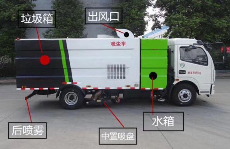 | 主要功能和配量 | 采用庆铃五十铃单排驾驶室,碳钢材质水箱和垃圾箱(做防腐处理),配备江铃77马力副发动机,配备大功率风机,吸力强劲,吸净率高 | ||