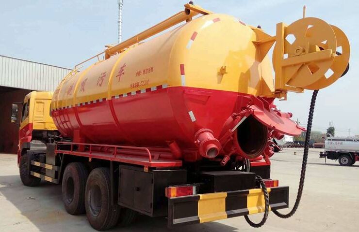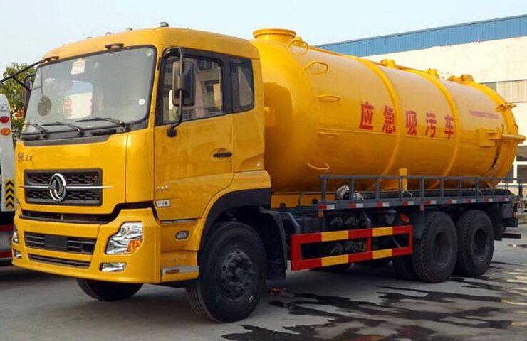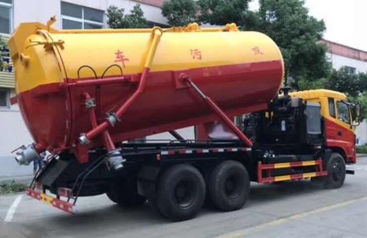 吸污车由二类专用汽车底盘加装取力器、传动轴、真空吸污泵/水循环吸污泵、压力罐体、液压部分,管网系统、真空压力表、视污窗、洗手装置等组成,随车配置大功率吸污泵和优质液压系统,罐体封头一次压铸成型、罐体可后开、双顶自卸。罐内污物可通过后盖直接倾倒,具有真空度高(比吸粪车的吸力更大)、吨位大、效率高、吸程远,特别适合用于下水道内的淤积物的抽吸、装运和排卸,尤其是可吸下水道泥浆、淤泥、石子、砖块等较大物体 。